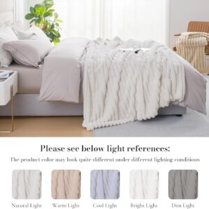 Amélie Home Faux Fur Throw Blanket for Couch, Cozy Fuzzy Fluffy Fur Luxurious Soft Striped Plush Gift Blankets for Family Sofa Chair Bed Living Room Bedroom, 55″x70″, Ivory