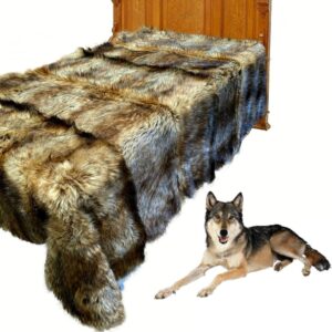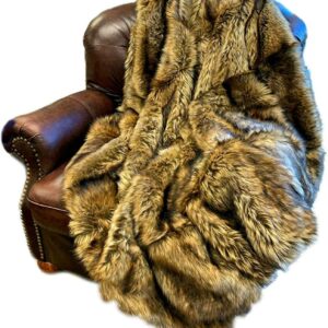 Fur Accents Exotic Pieced Fur – Golden Wolf – Faux Fur Throw Blanket – Bedspread – Extreme Luxury – Cuddle Fur Lining Hand Made – USA (5’x5′)